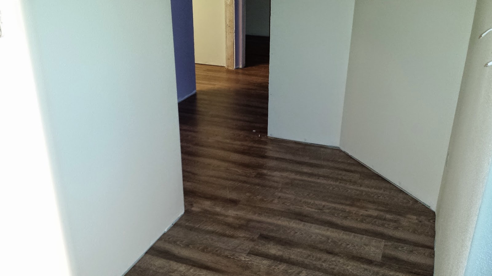 This is the hallway. Love the angles! It needs molding and a light.